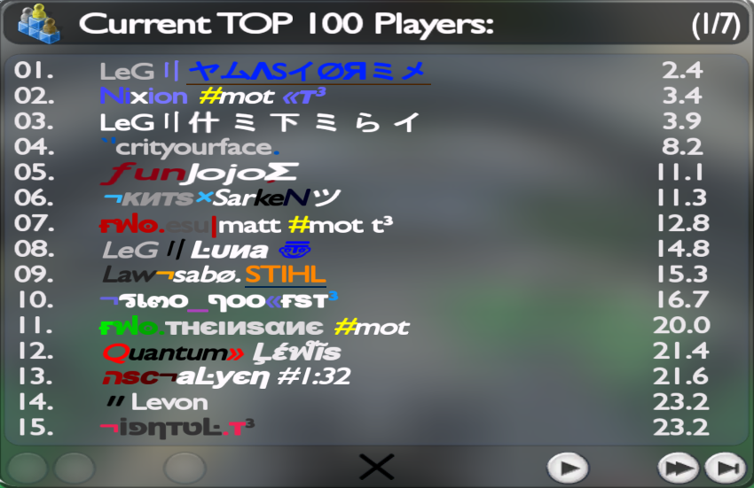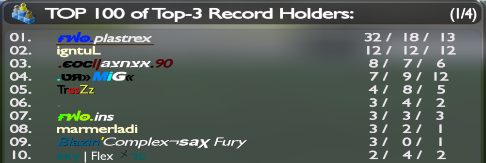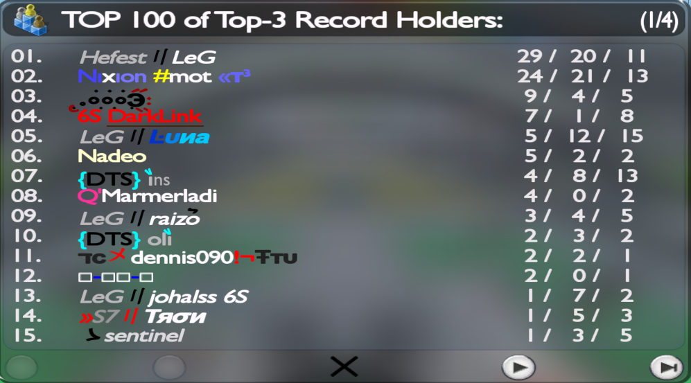 Trackmania Legends is a contest organized by Nicklander, Nixion, Team Sky, Team #mot & friends. It's all about hunting a well known map series by a legendary mapper. These legends contributed enormously to our community, their maps were revolutionary in terms of creativity, quality and of course fun. Without their work, many players wouldn't even have started playing the game, including myself. We wouldn't be where we are right now. Therefore I think it's time to give something back to the creative masterminds that forged our community over the years. We hope that you will have a great time remembering those old milestones in TM history. Don't forget to upload your replays to TMX and of course AWARD the maps you liked to pay respect to the mappers.