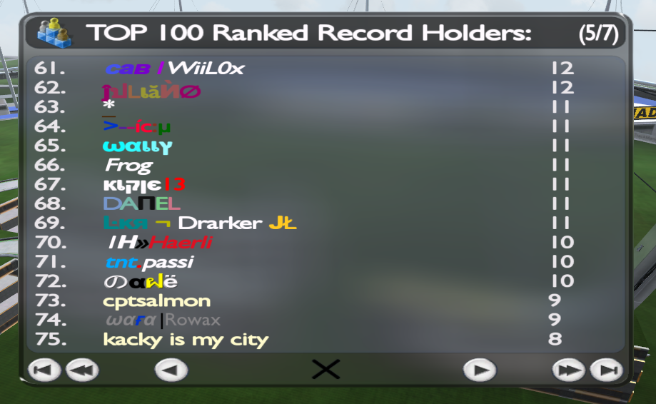 The rules are quite simple: The goal is to finish as many maps as possible. There's a total of 50 maps which will be played for 1 month and every finished map will grant 1 point. The server rank (or the time driven on the tracks) only matters in the case of same number of finishes between two or more players. At the end of the event, the results will be announced on KK discord server, as well as here on TMX.
